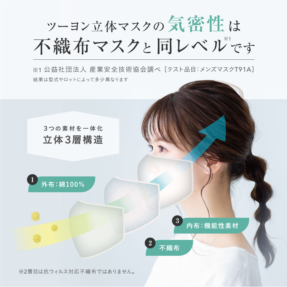 - 繰り返し洗って繰り返し使えるツーヨンの布製マスク